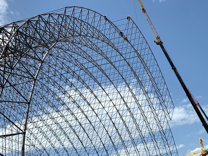 (2)网架加工前应对现场尺寸进行复测,确认无误后方可进行加工、安装;网架制作、运输、安装应遵守《空间网格结构技术规程》JGJ7-2010、《钢网架菏泽螺栓球节点》JG/T 10-2009、《钢网架菏泽螺栓球节点用高强度螺栓》 GB/T 16939-2016、《菏泽钢结构菏泽工程菏泽施工规范》 GB50755-2012、《菏泽钢结构菏泽工程施工质量验收标准》 GB50205-2020。